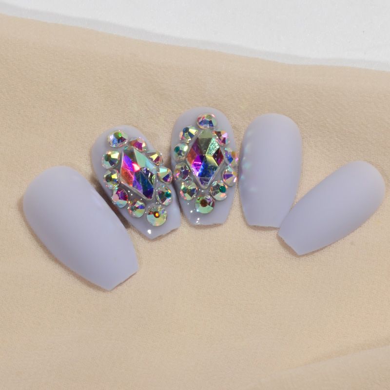 Light Blue Ballerina False Nails Brown Color Ab Crystal Matte Full